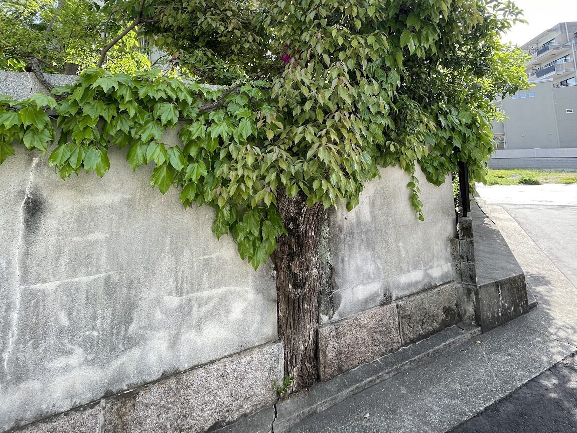 集合場所の阪急芦屋川駅から山手に向かいます。この周辺は芦屋がまだ田畑が広がる農村だったころから人が住んでいた、山芦屋という集落だったところです。高級住宅地として有名な芦屋らしく、さっそく立派なお屋敷がちらほら目につきますが、キラキラとした豪邸といよりは、重厚な邸宅といった印象を受けます。古い集落をとり囲む形で、阪神間に鉄道が通り宅地化が始まった明治末期〜昭和初期に開発されたエリアなので、その時代の富豪たちの美意識が反映されているのかもしれません。