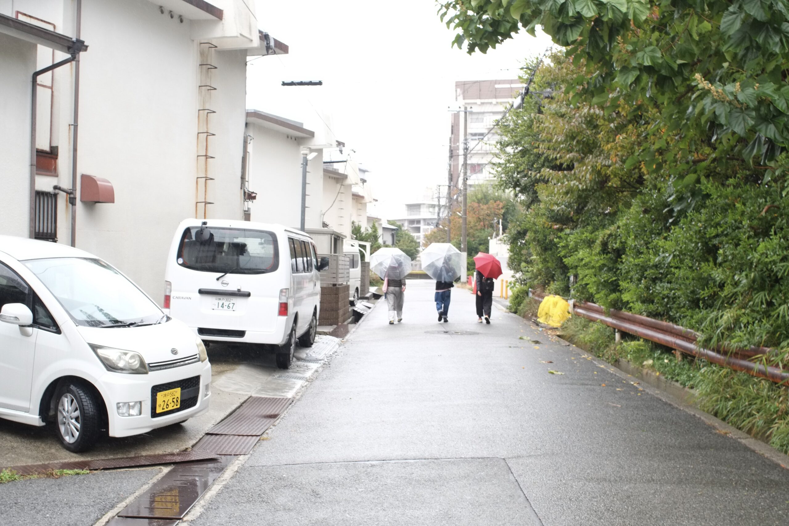 そして、ウロウロ〜カルクルーのツツイ(私)とワタナベの2人に加え、ゲストとして川瀬さんと未央さんにお声がけしました。川瀬さんは神戸市民の住まいのお困りごとを支援する「すまいるネット」で働かれており、団地住まいももちろん守備範囲です。未央さんは主に埼玉でマーケット(常設ではなく仮設で開催される一時的な市場)を媒介としたまちづくりを実践されてきました。この度、地元の神戸(らへん)に戻られたことを機に、「マーケットの学校 in Akashi-Maiko」など明舞団地での活動にも関わり始めています。団地好きのツツイとしては、今回のまち歩きにこの布陣で臨めることに胸が高鳴ります。